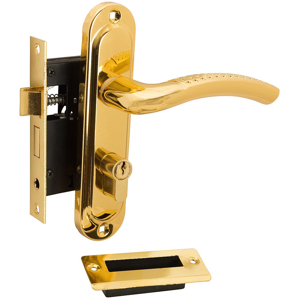 Комплектация: ручки на планке - 1 пара; замок - 1 шт.; ответная планка - 1 шт.; цилиндр ключ/фиксатор (5 ключа) - 1 шт.; крепеж - 1 к-т.