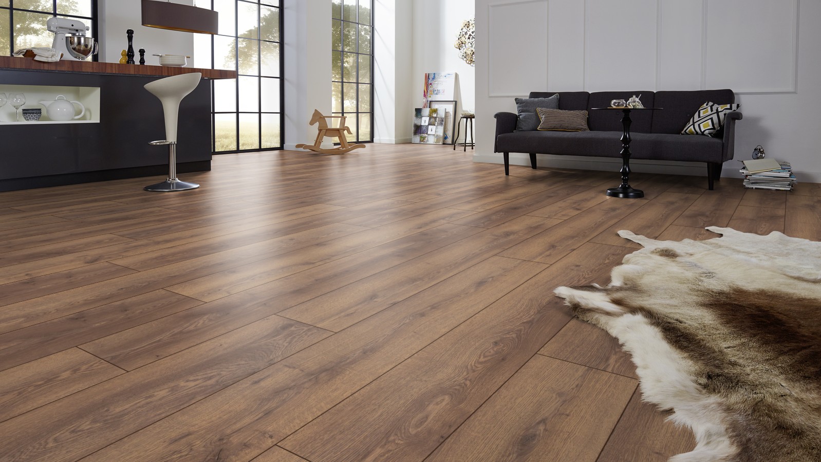 Ламинат Kronotex Дуб горный коричневый — идеальный выбор для тех, кто ценит натуральную эстетику дерева в сочетании с немецкой надежностью.
